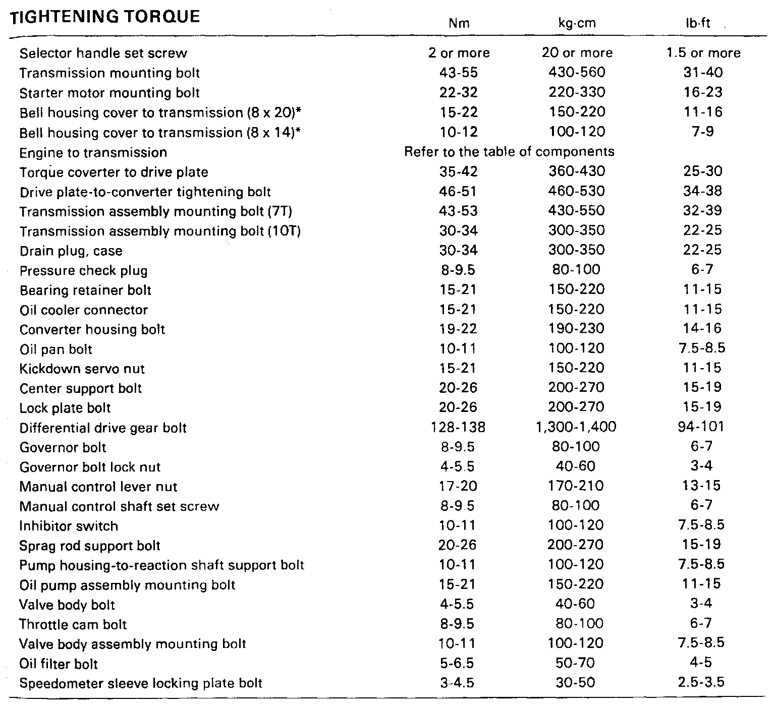 A/T Torque Data