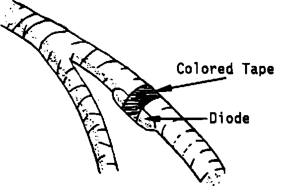 The capacity of the diode has been increased from 50v to 600v to increase reliability. Additionally, to improve serviceability, a colored tape band has been added to help identify the diode location.
