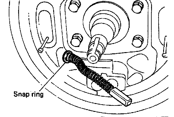 5. Remove the rear brake assembly and snap ring. Then remove the brake cable from the lever.