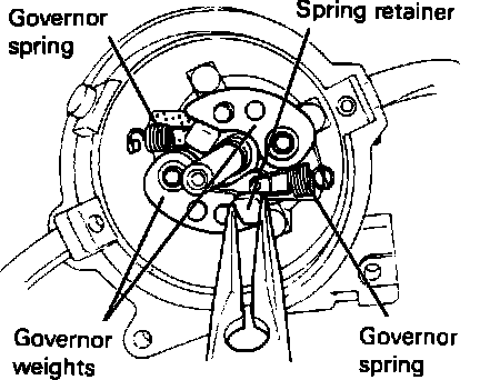 10. Remove two spring retainers with pliers and then remove governor springs.