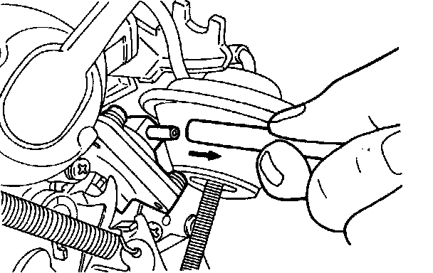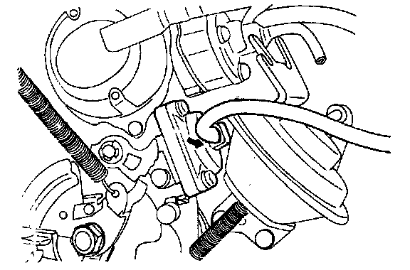 1. Disconnect the vacuum hose (white stripe) from the choke opener.
