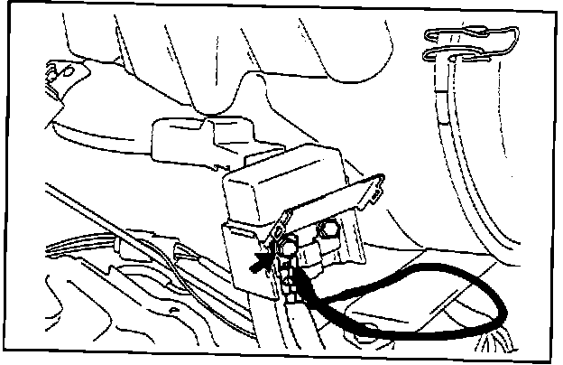 7. Remove the 10 mm mounting bolt for the 8.0 WHT wire in the fusible link box. (Refer to Figure 1, item C)