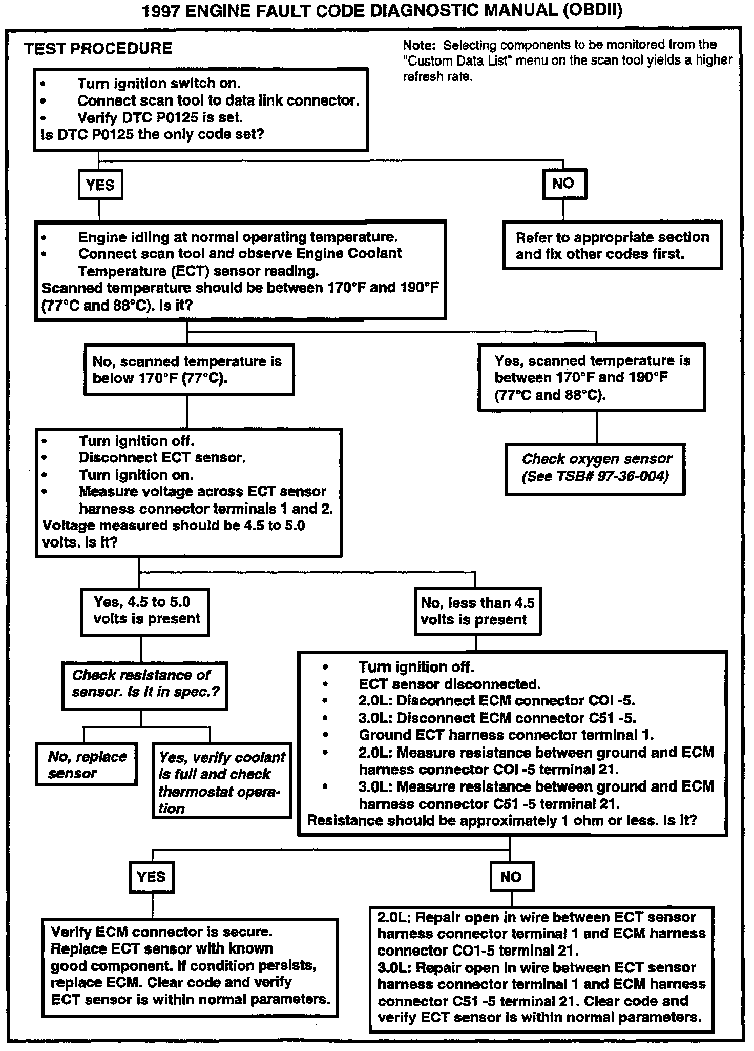 1997 FAULT CODE DIAGNOSTIC MANUAL UPDATE (CODE P0125)