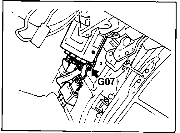 5. Disconnect the connectors from the electronic control unit (ECU) and remove the bolt securing the ground wires (G07).