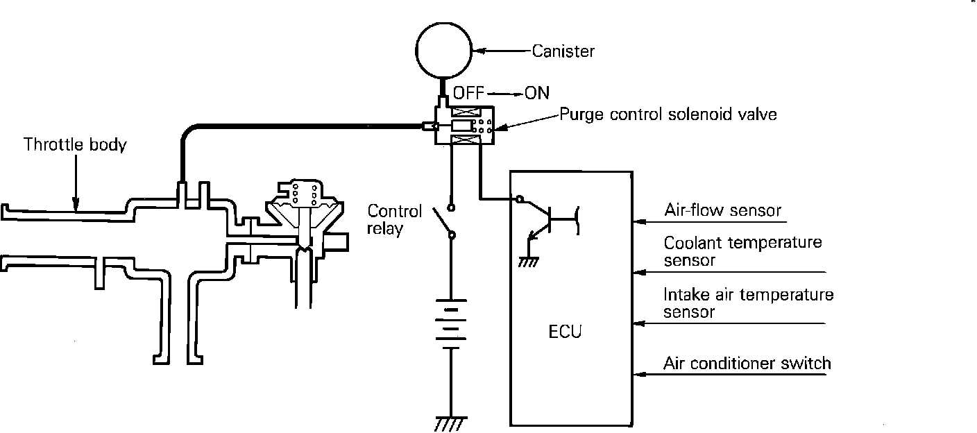 The purge control solenoid valve, is controlled by the ECU.