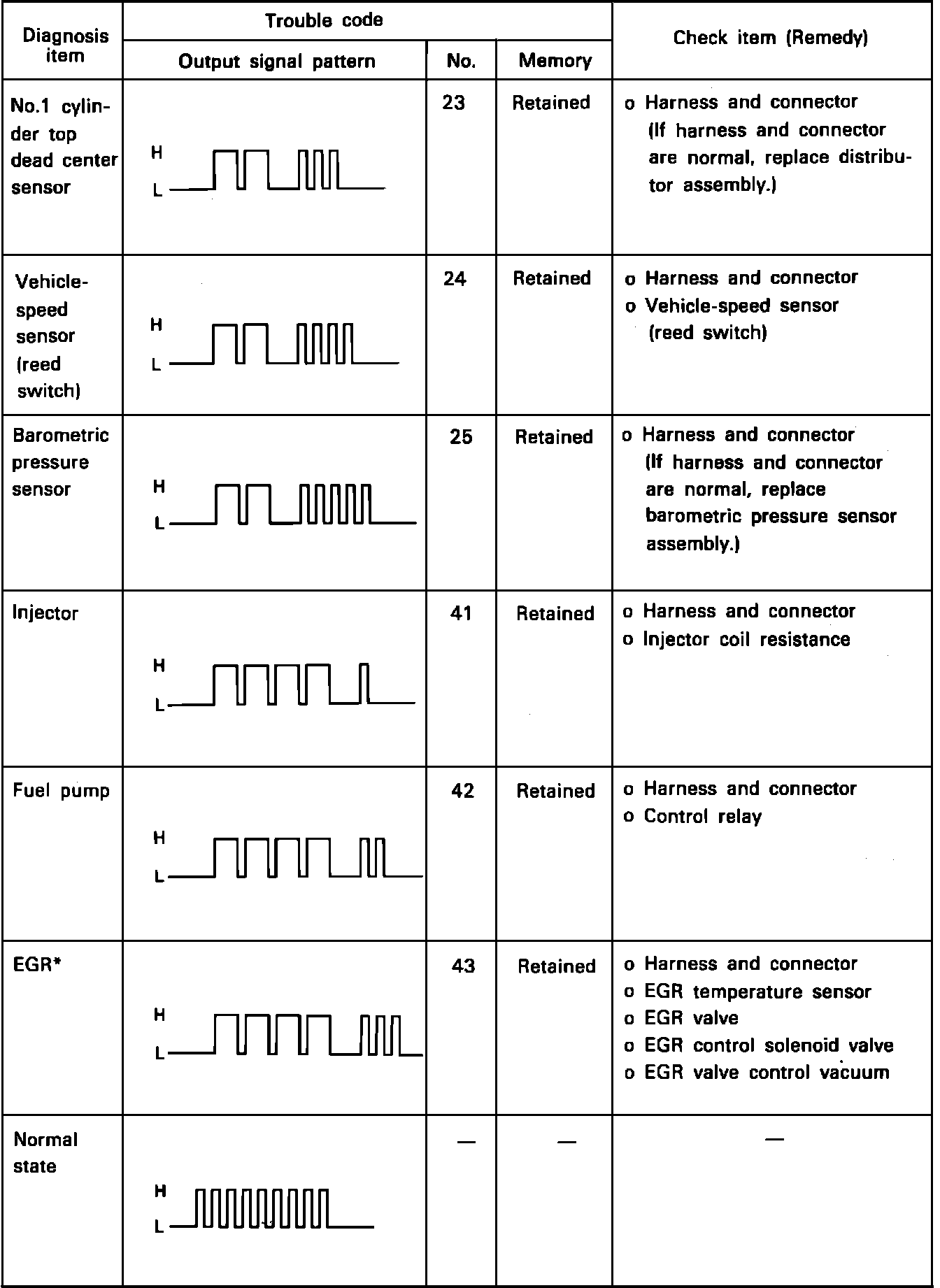 Diagnostic Trouble Codes 23 - 43:
