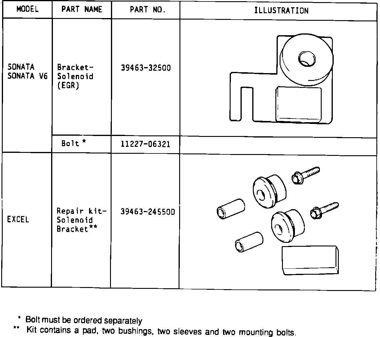 2. EXCEL: Using the repair kit, replace the bushings and sleeves and attach the pad to the back face of the bracket