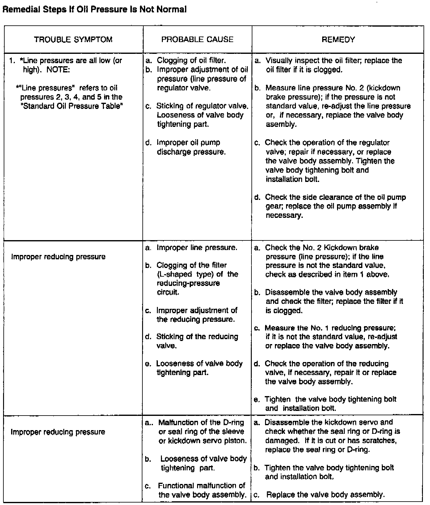 AUTOMATIC TRANSAXLE PRESSURE