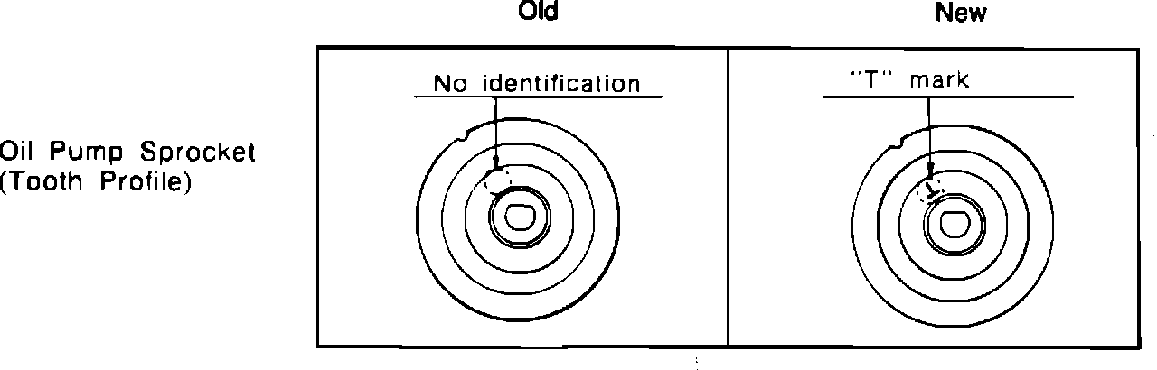 To reduce the noise generated by the engine, the timing belt material, tooth profile and oil pump sprocket tooth profile have been changed.