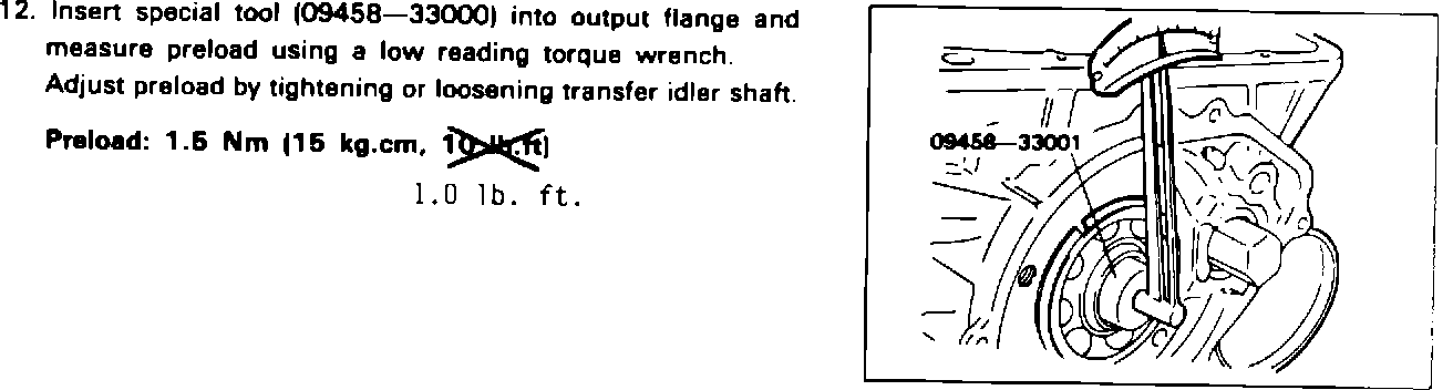 TRANSFER IDLER SHAFT PRELOAD - SHOP MANUAL CORRECTION
