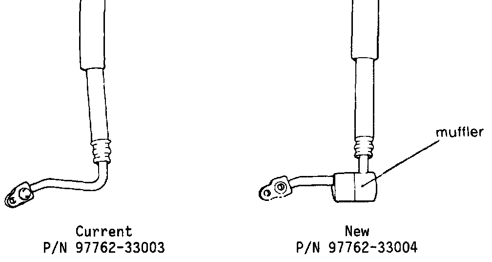 A modified compressor discharge hose that incorporates a noise muffler is now available for use on the 2.4L Sonata A/C system. This new hose, which is interchangeable with the previous hose was incorporated in production on 10/20/89.