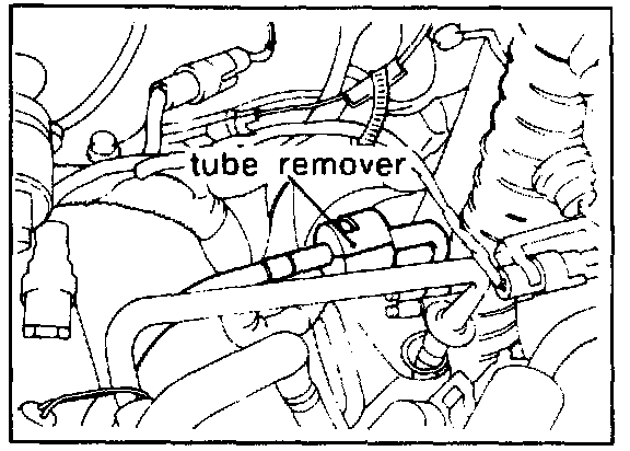 8. Remove the discharge hose from the condenser assembly using the tube remover (SST P/N 09977-33600).