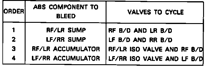 This procedure should be used to insure adequate bleeding and filling of the ABS unit, brake lines, master cylinder and calipers.
