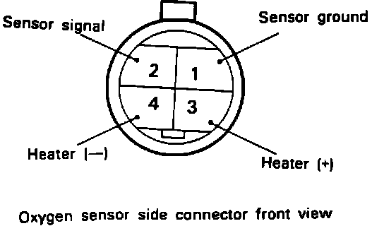 2. Disconnect the oxygen sensor from the wire harness and connect a digital voltmeter (greater than 1 Meg ohm input impedance) between the oxygen sensor output connector and ground (terminals #1 and #2).