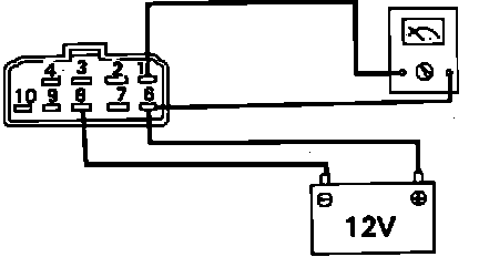 Check terminals 8(+) and 6(-), should be non-conductive (infinite ohm).