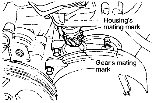1. Align the drive gear with the mark made at the time of disassembly, and install the gear to the distributor shaft.