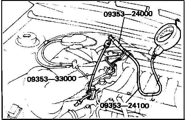 3. Using the fuel pressure gauge adapter (09353 - 24000) or equivalent, install the fuel-pressure gauge to the delivery pipe (fuel rail).