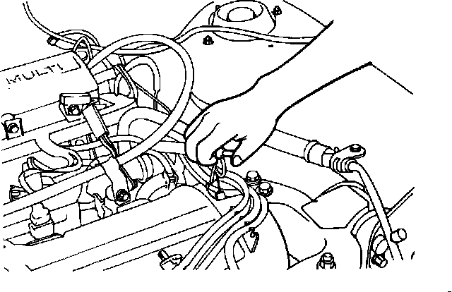 2. While the engine is at idle place a finger over the open end of the PCV valve and verify that vacuum is felt. Note that it is possible to feel the internal plunger move when a finger is placed over the end of the valve.