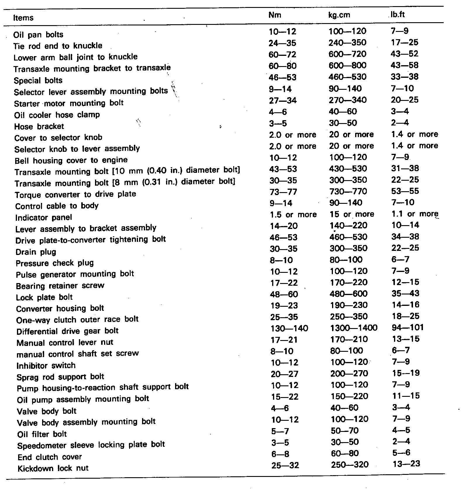A/T Torque Data