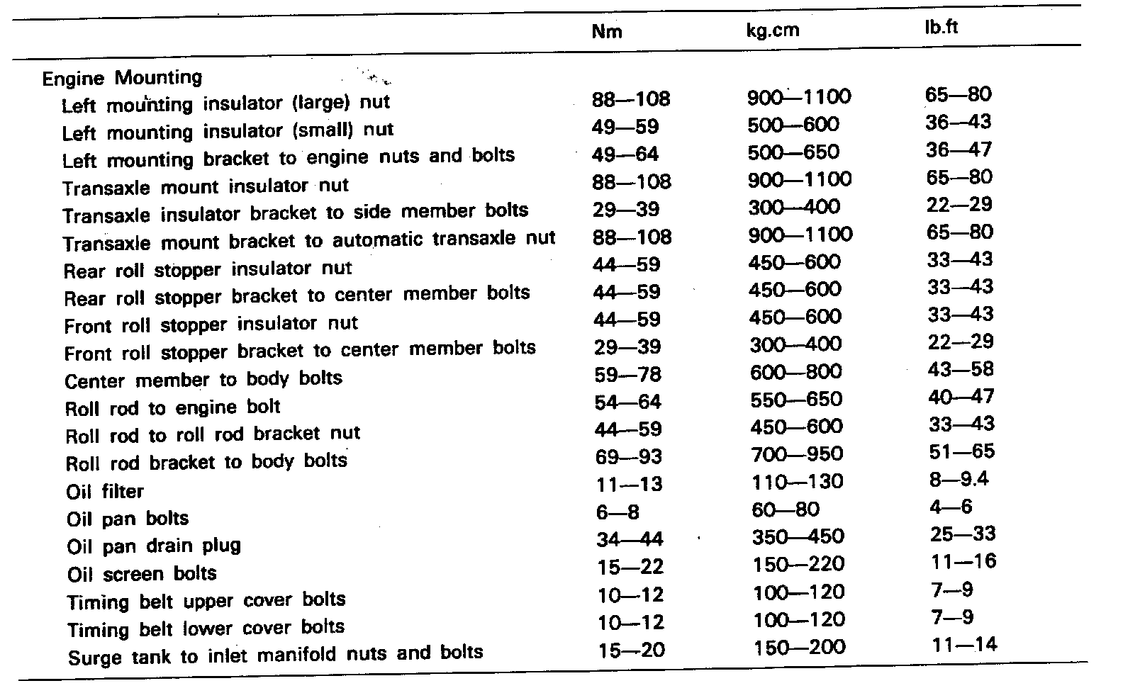 Tightening Torque Specifications