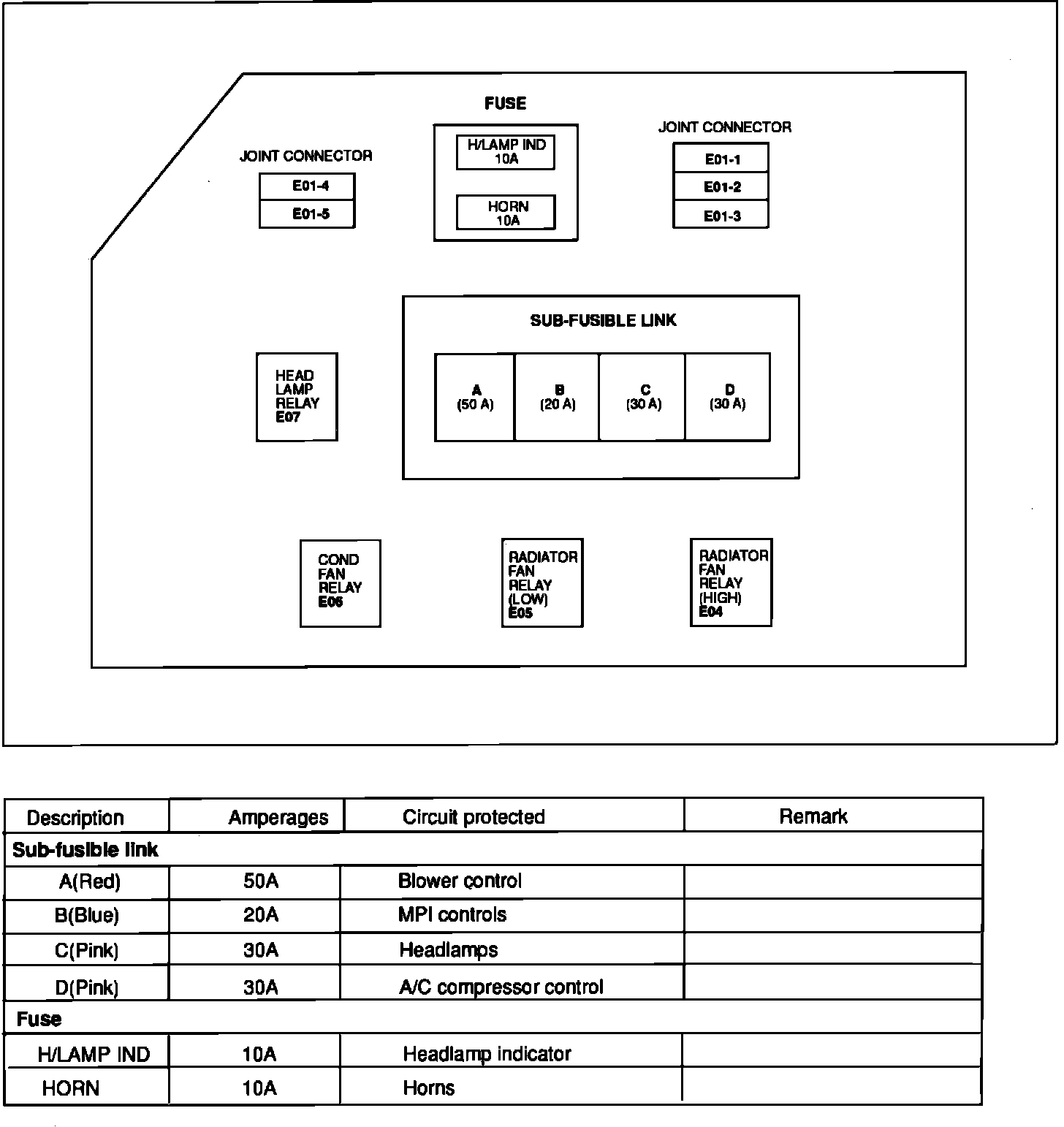 Fuse Panel Details. Engine Compartment Relay Box: