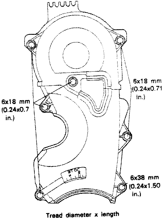 8. Remove the crankshaft sprocket bolts. Remove the crankshaft sprocket and flange.