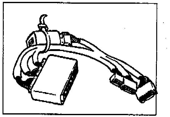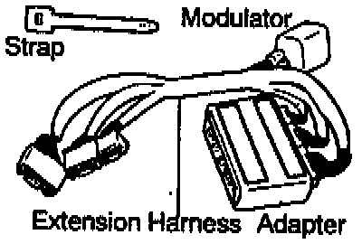 6. Strap the modulator and the extension harness together as shown, and cut the excess tie strap off. Connect one set of extension harness connectors (the end with no red tape) to one side of the adapter.