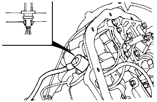 5. Press the tab of the solenoid valve harness grommet and push in.
