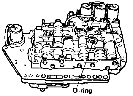 8. Check to be sure that the O-ring is installed on the upper surface of the valve body at the place shown.