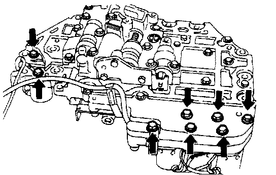 26. After securing the lower valve body using the 13 installation bolts, remove the special tool