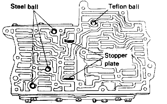 19. Install, in the upper valve body, the three steel balls the teflon ball, and the stopper plate.