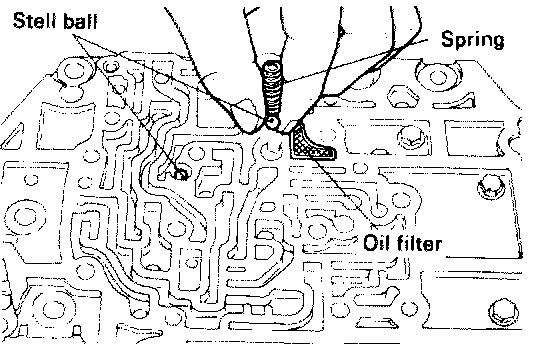 23. Install to the intermediate plate, the oil filter, the two steel balls, and the spring.