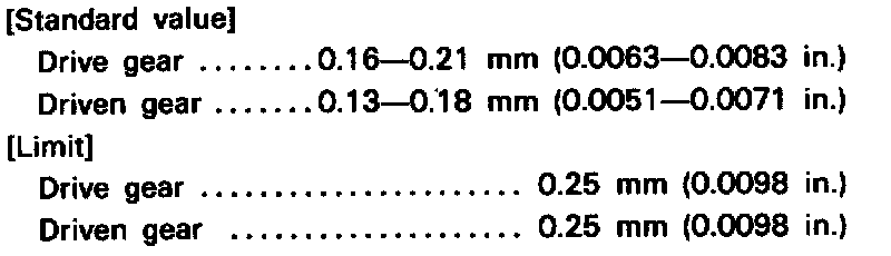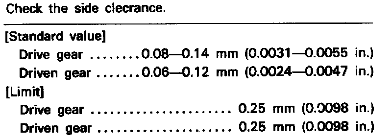 4. With drive and driven gears installed, measure tip clearance of gears, Fig. 12, then side clearance, Fig. 13. If clearance is not within specifications, replace gears.