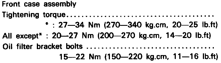 4. Install front case assembly through a new front case gasket and temporarily tighten the flange bolts (other than those for tightening the filter bracket).