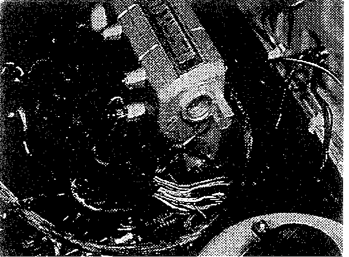 2. Under the crash pad on the driver's side, disconnect the ECM wiring harness connectors and ground wires from the ECM. Disconnect the two main wiring harness connectors. Remove the tie-strap from around the ECM wiring harness and main wiring harness.