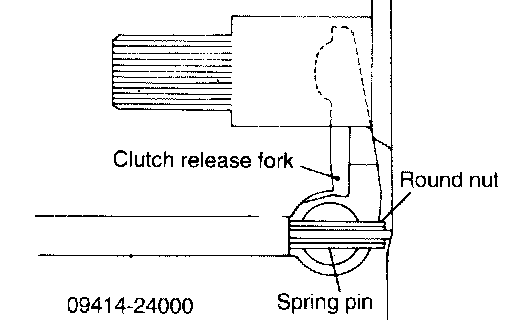 6. Insert the special tool (09414-24000) in the spring pin and attach the round nut to the end of the tool.