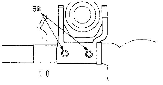 (1) Install the spring pins so that the slits cross the centerline of the release fork shaft as.shown.
