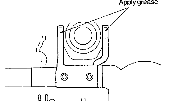 4. Apply multipurpose grease to the release bearing contact surfaces of the clutch release fork.