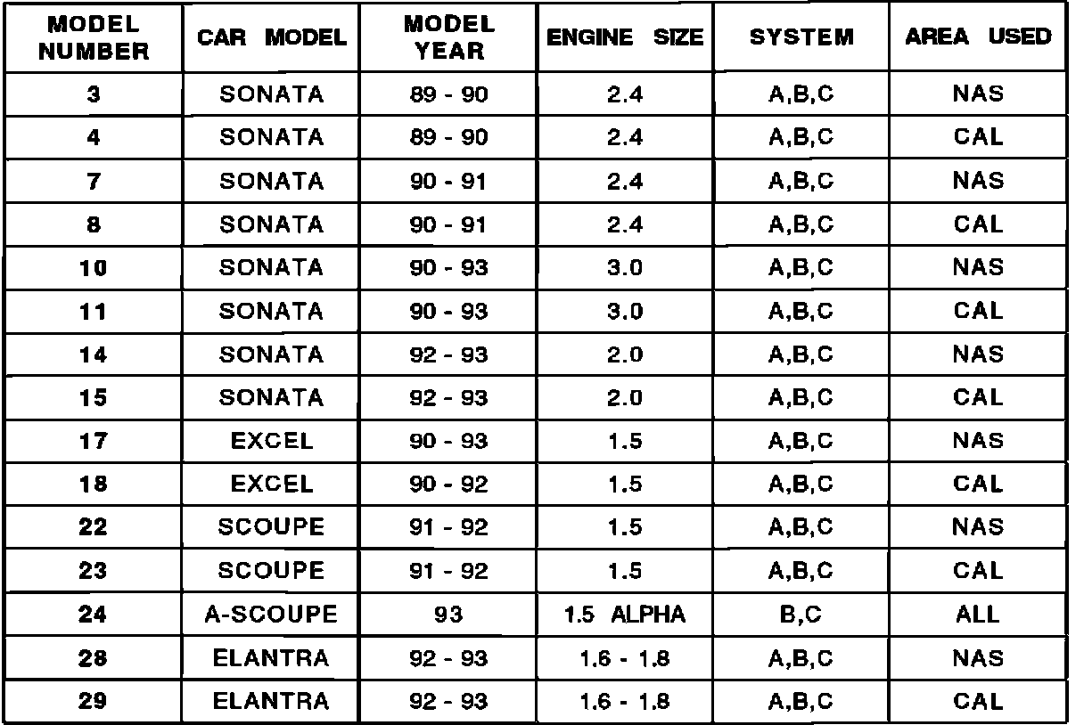 MULTI-USE TESTER (MUT) ROM PACK VEHICLE AND COMPONENT APPLICATION CHARTS
