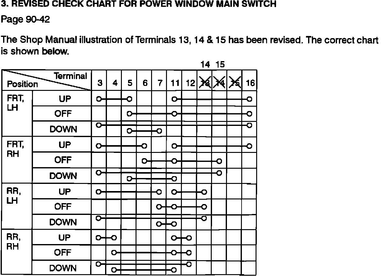 3. Revised check chart for power window main switch