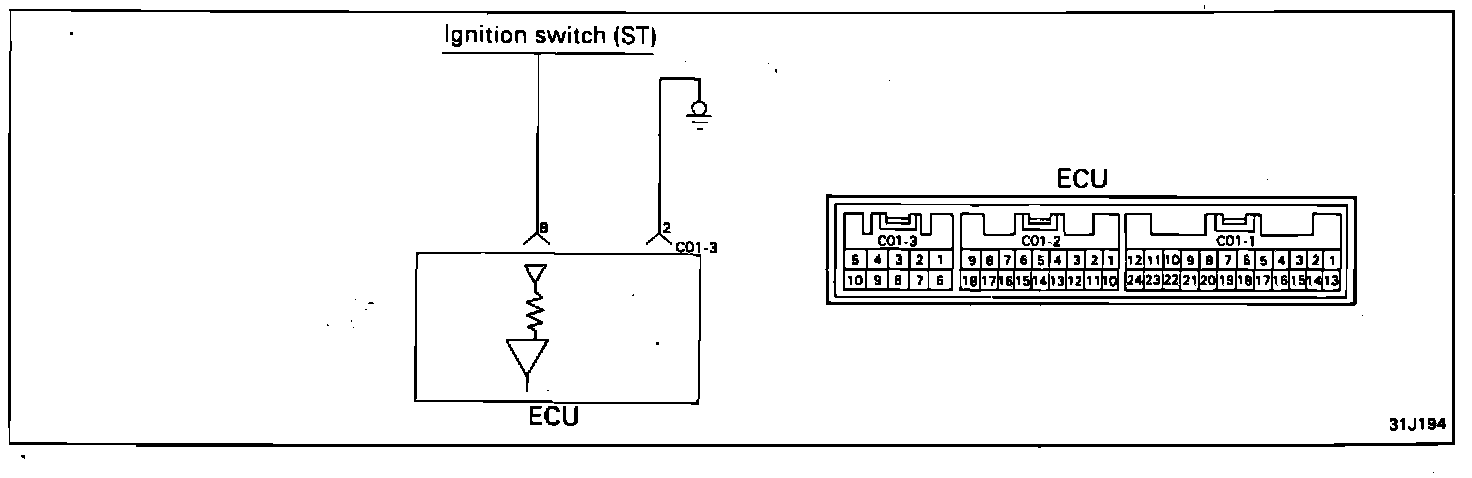 3. Turn the key to the OFF position and check for continuity between ECU harness connector terminal 2 and ground.