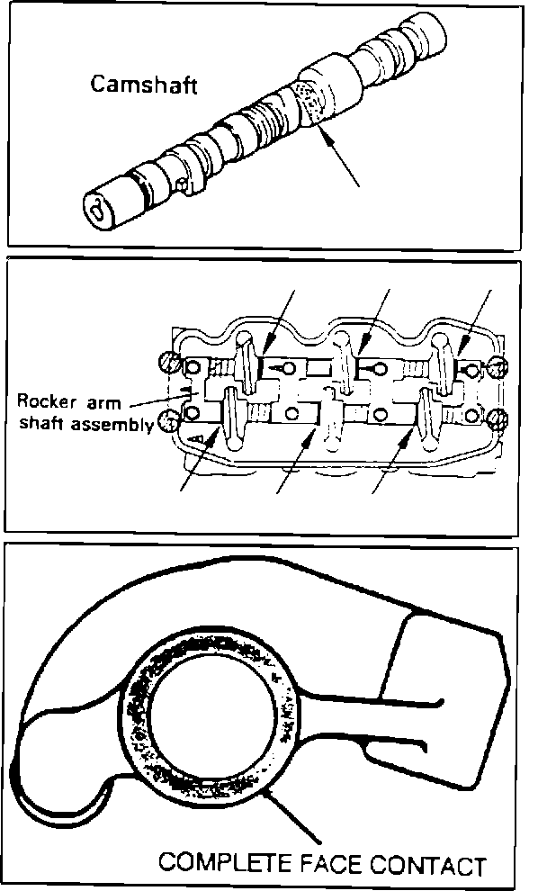 Remove the rocker arm assembly as described in the appropriate Sonata Shop Manual. Remove the rocker arms from the rocker arm shafts, noting the arm and bearing cap positions for later reassembly. Inspect the side of each rocker arm for shiny spots where it comes in contact with the bearing tower.
