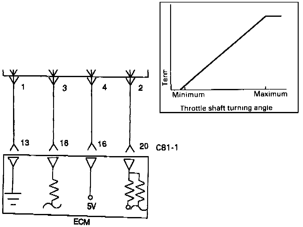 The [1][2]Throttle Position Sensor signal is important in the control of automatic transaxle. Shift shock and other troubles will occur if the sensor is faulty.