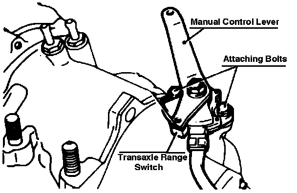REPLACEMENT OF TRANSAXLE RANGE SWITCH1. Place manual control lever in neutral position, then remove control lever retainer and lever.