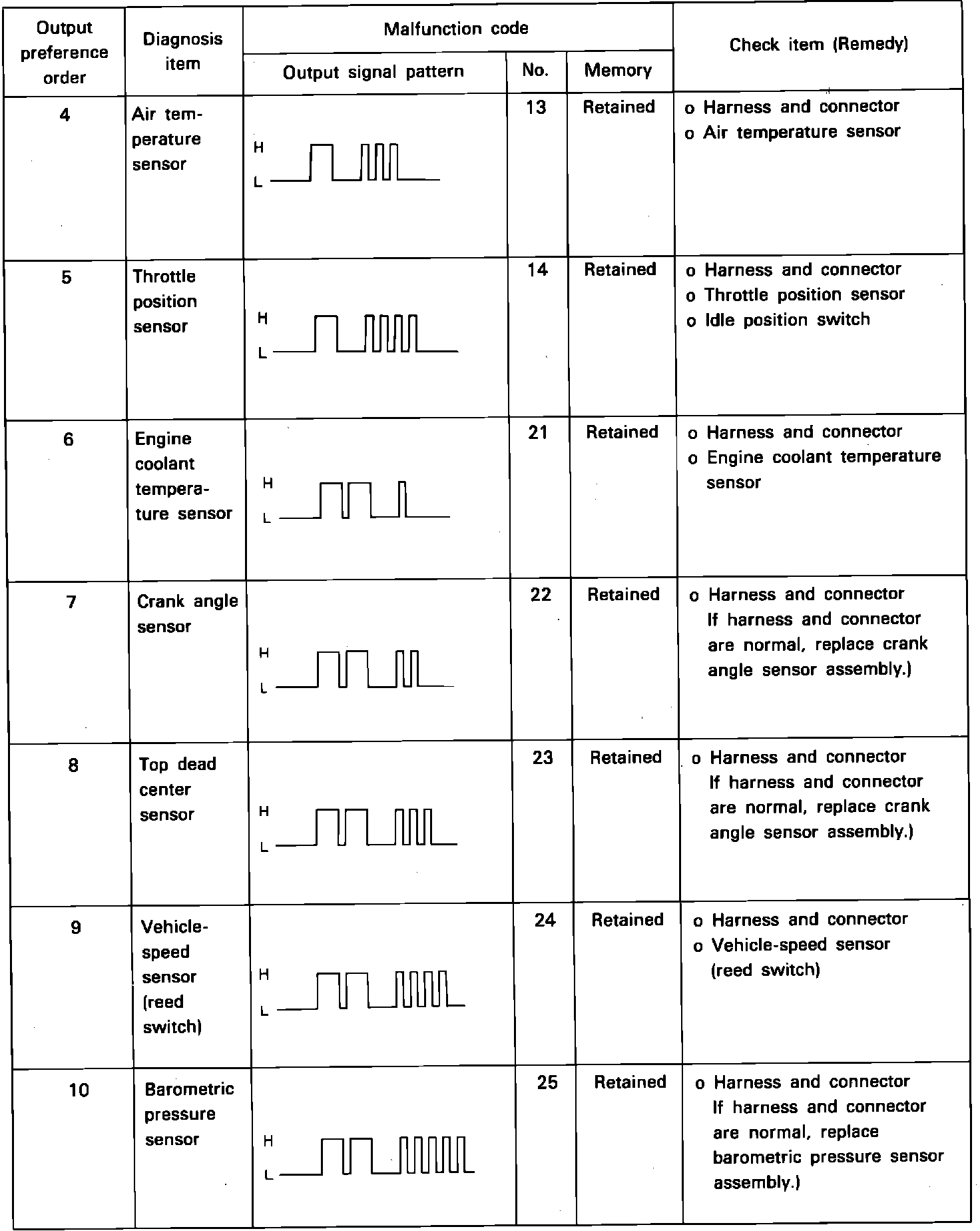 Diagnostic Codes 13-25: