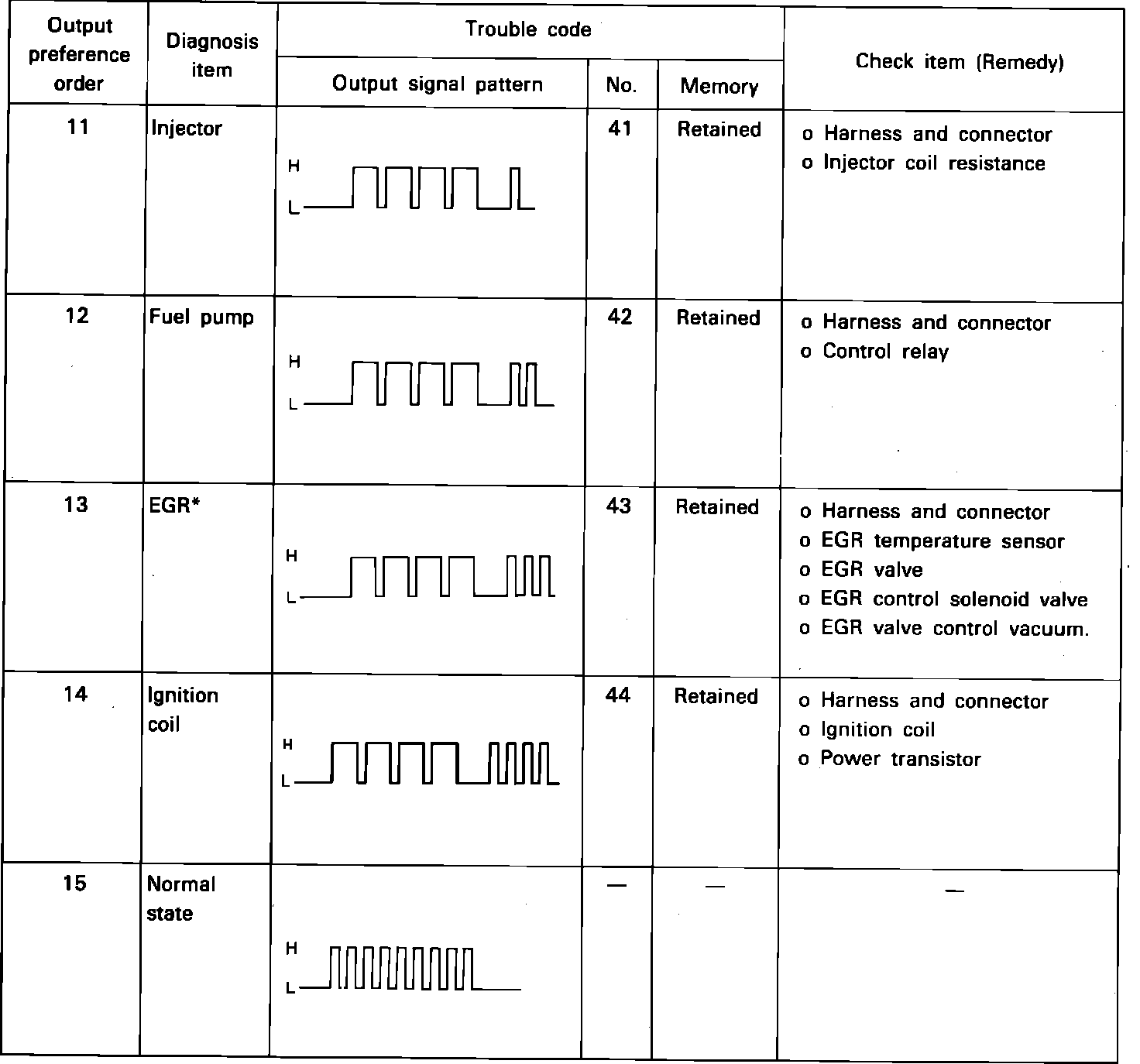 Diagnostic Trouble Codes 41 - 44: