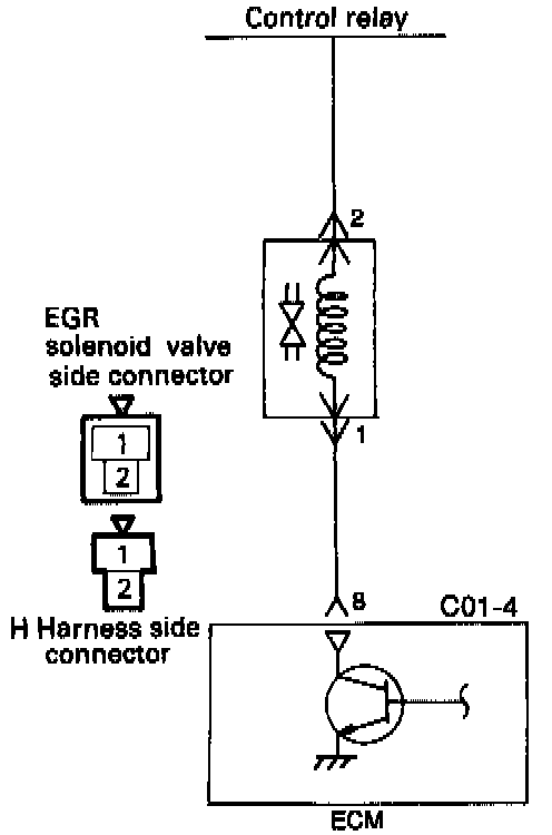The exhaust gas recirculation solenoid valve is a duty control type solenoid valve, which makes control by leaking exhaust gas recirculation valve operating negative pressure to the throttle body a port.