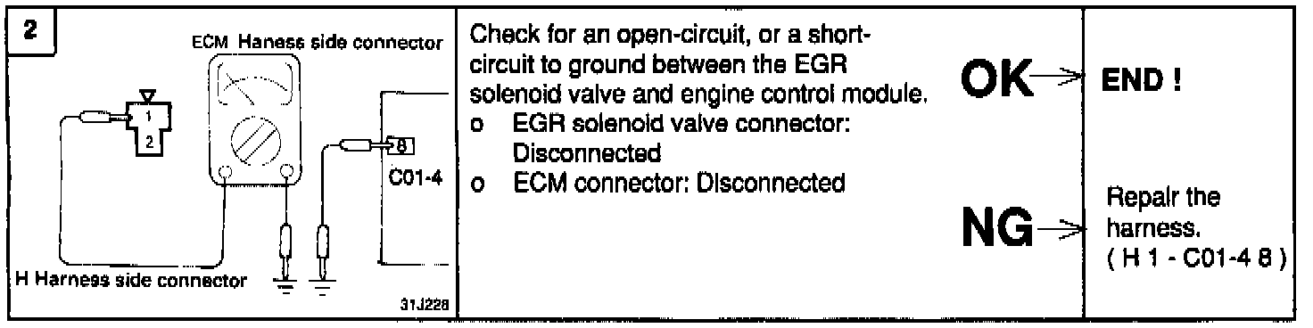 If the results of exhaust gas recirculation solenoid valve on-vehicle and off-vehicle inspections are normal but the diagnostic trouble code for exhaust gas recirculation system failure is displayed, check the exhaust gas recirculation valve, vacuum hose and exhaust gas recirculation passage for blocking.