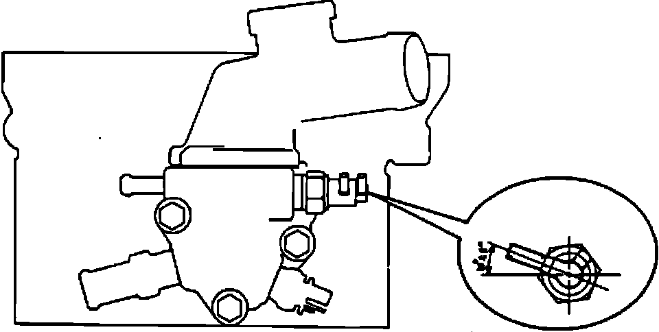 3. Turn the thermo valve assembly clockwise until it reaches 10~ +/- 5~ above horizontal as shown in the figure. If the thermo valve assembly cannot be tightened clockwise to this position, remove the thermo valve and tape the threads with teflon tape. Re-install the thermo valve and tighten to the new position explained above.