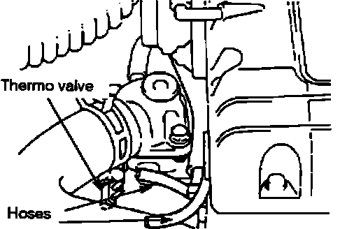 The thermo valve assembly vacuum hoses may be damaged by excessive heat as a result of direct contact with the engine block.